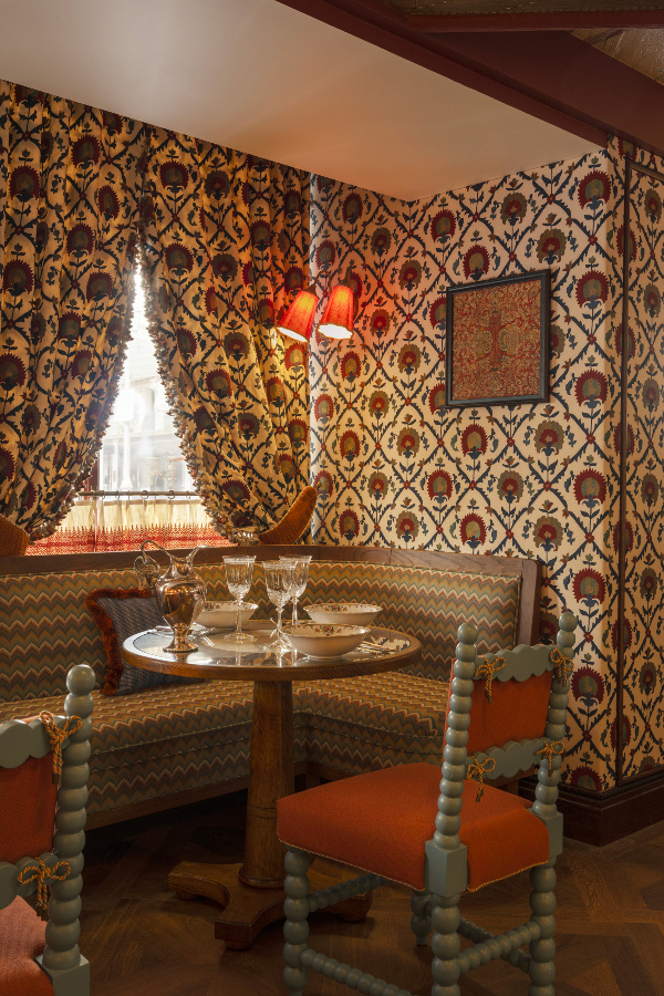 La curation artistique de l’hôtel, guidée par un esprit romantique et floral, propose une sélection d’œuvres mêlant contemporain et ancien, paysages bucoliques et formes colorées abstraites. L’atmosphère d’un salon littéraire d’antan a été l’une des principales sources d'inspiration lors de sa conception. « Nous voulions que l'hôtel donne l'impression d'avoir toujours fait partie du paysage du Marais. Nous nous sommes inspirés des grandes Maisons de l'époque aristocratique, où des personnalités de la littérature, de l'art et de la musique se retrouvaient dans des résidences somptueuses pour s’adonner aux plaisirs des lettres et de la belle conversation. Notre concept du Grand Mazarin était de raviver cette ambiance et de l’adapter à l’époque contemporaine, où les invités se sentent comme chez eux », souligne Martin Brudnizki.